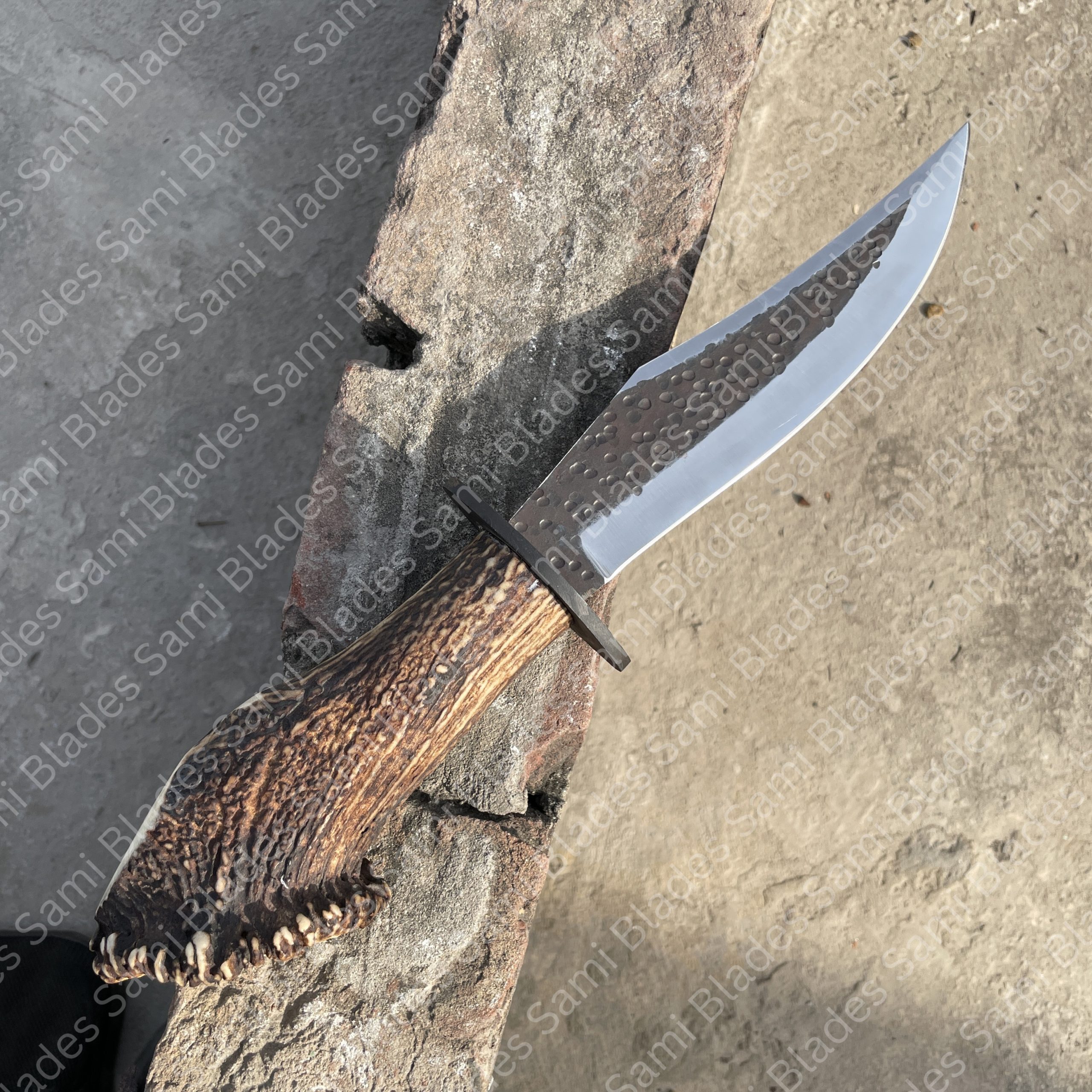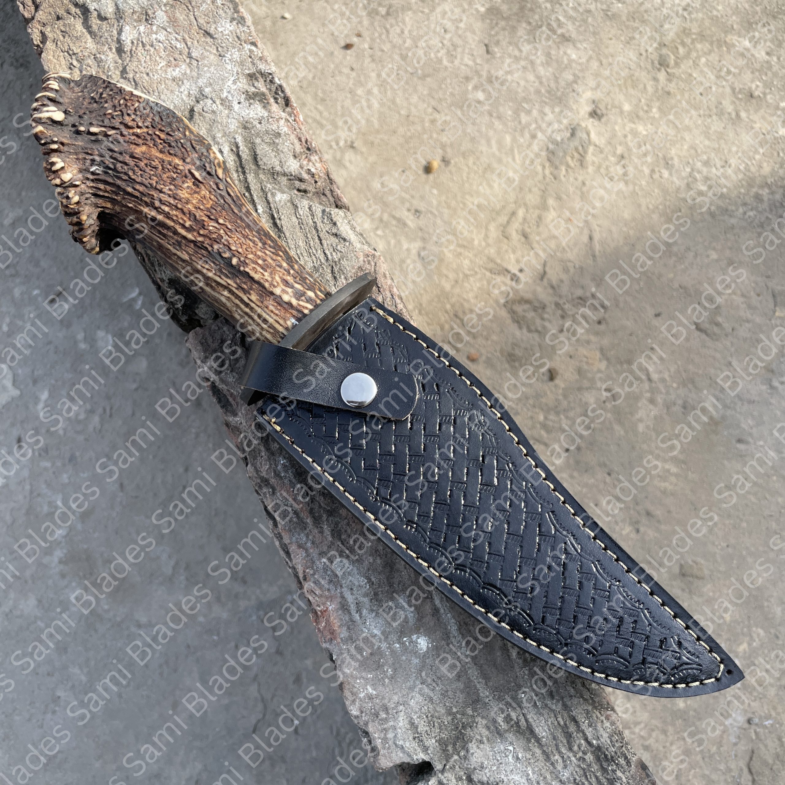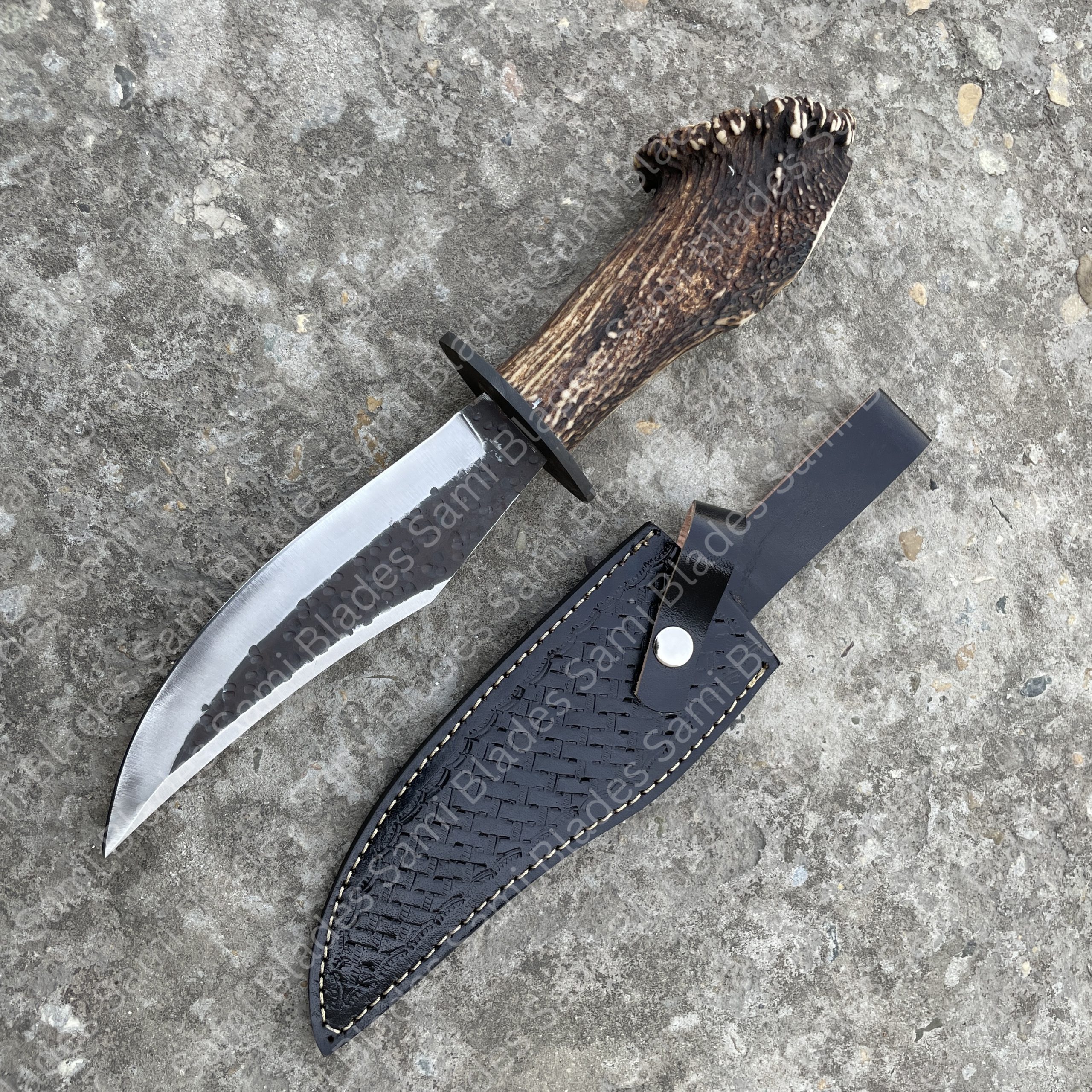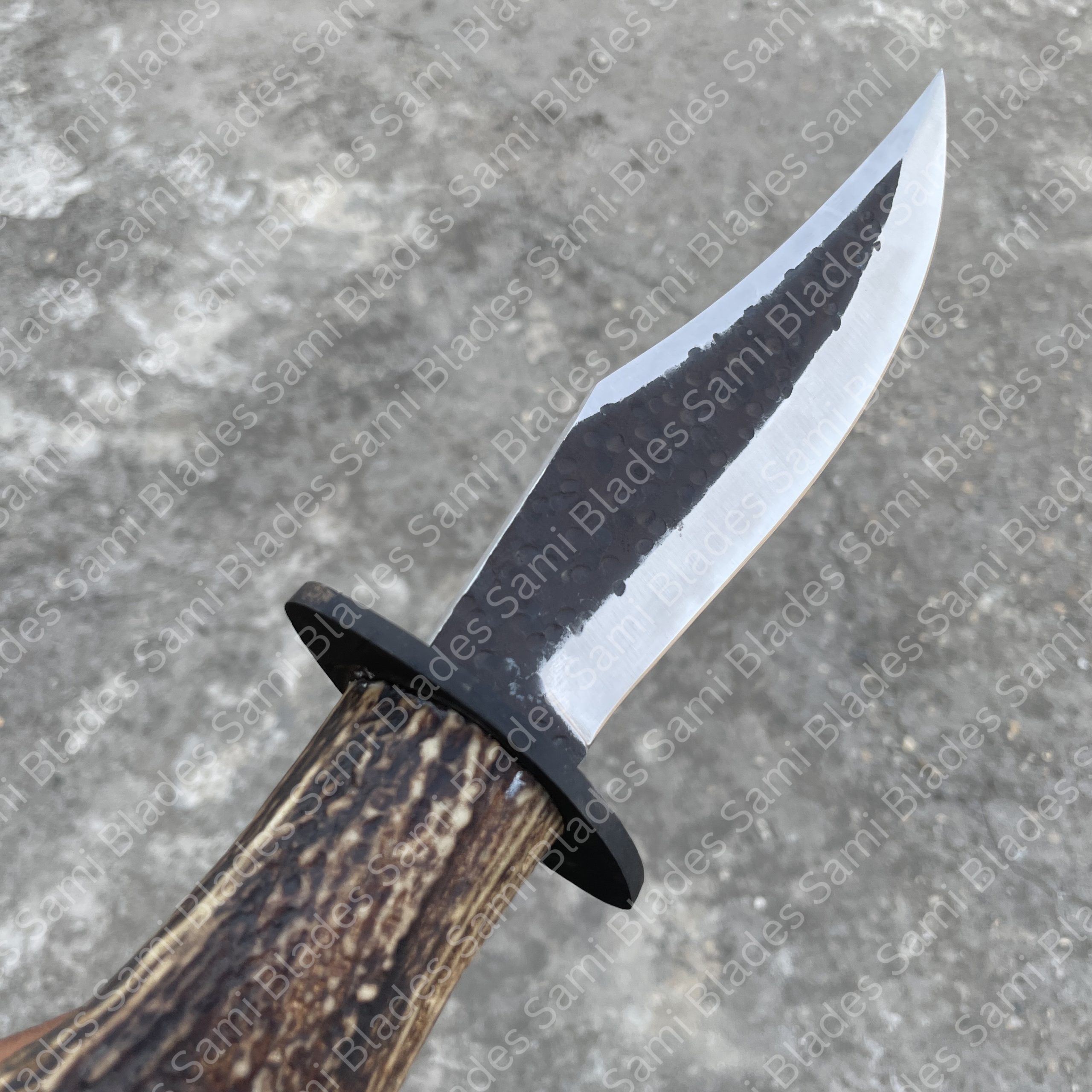 This custom stag handle bowie comes with a genuine leather sheath for safe storage and stylish cart, Making this steel knife an excellent gift or addition to any collection.