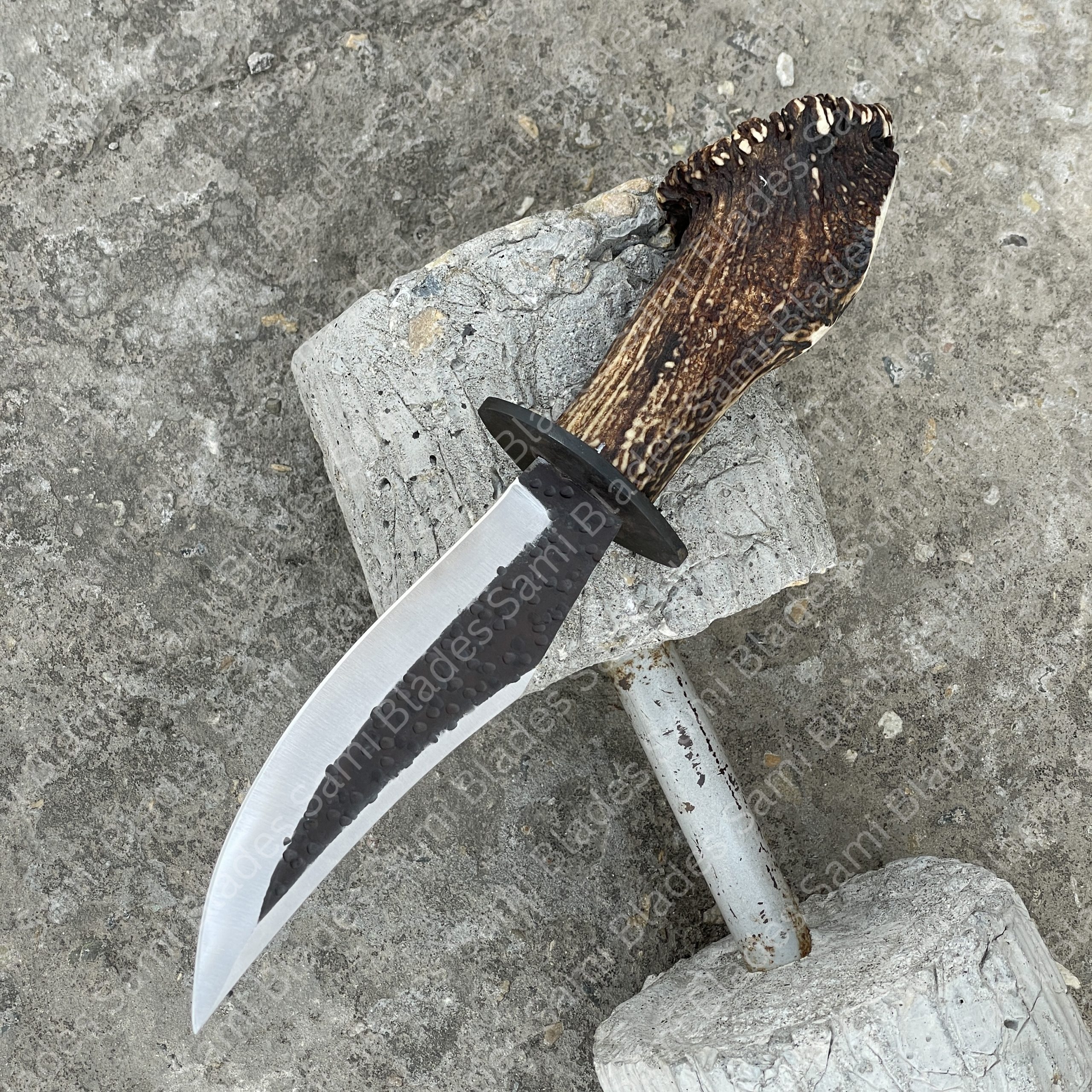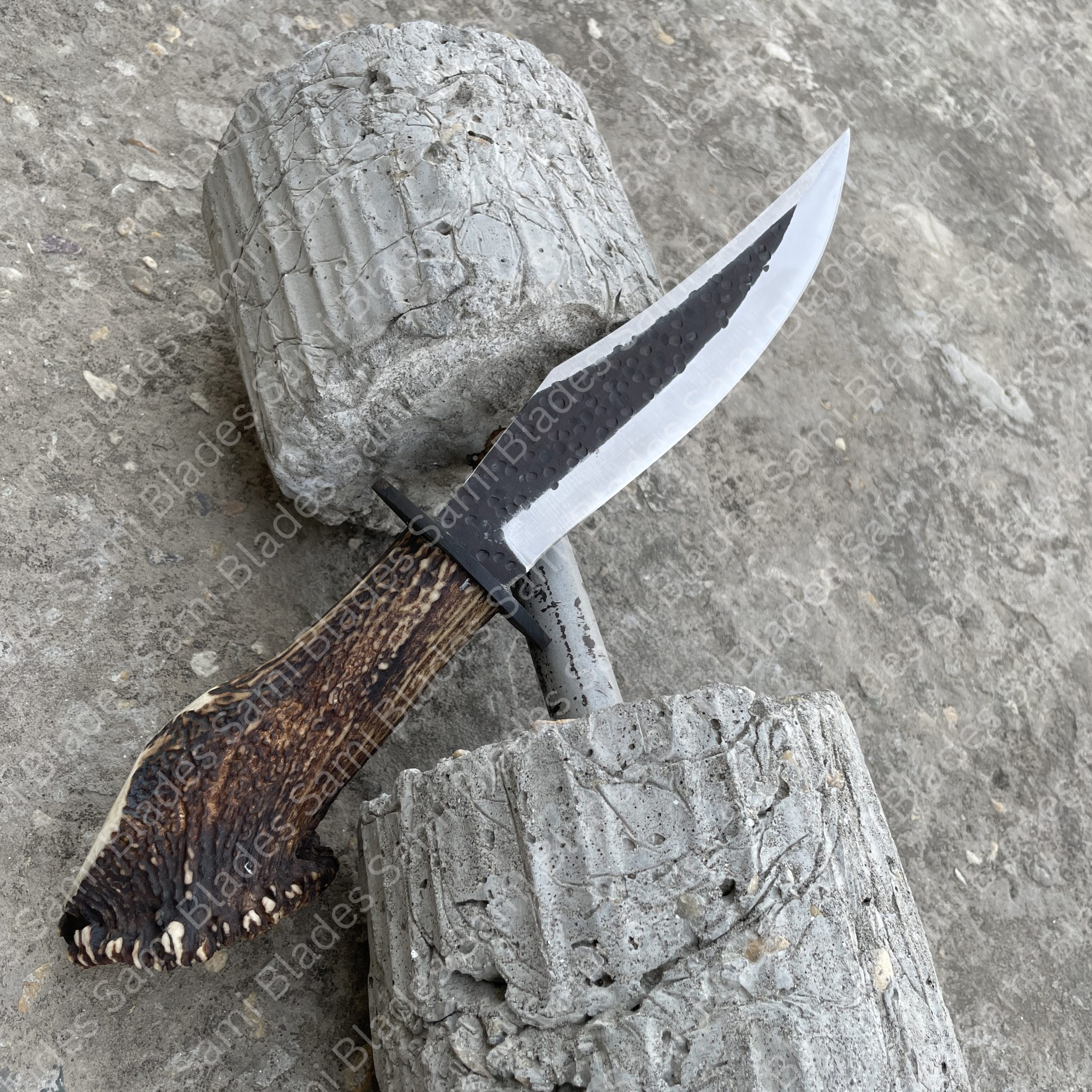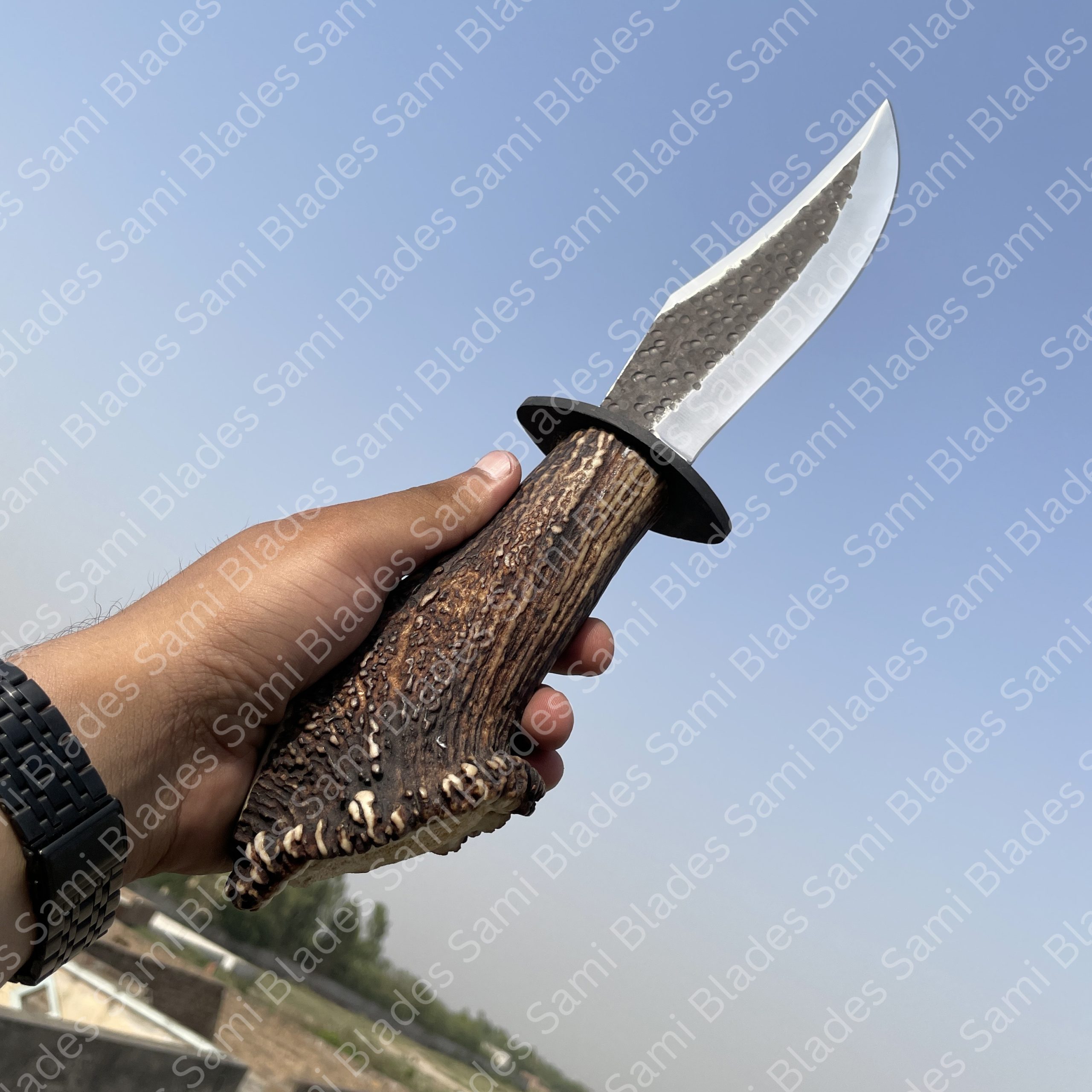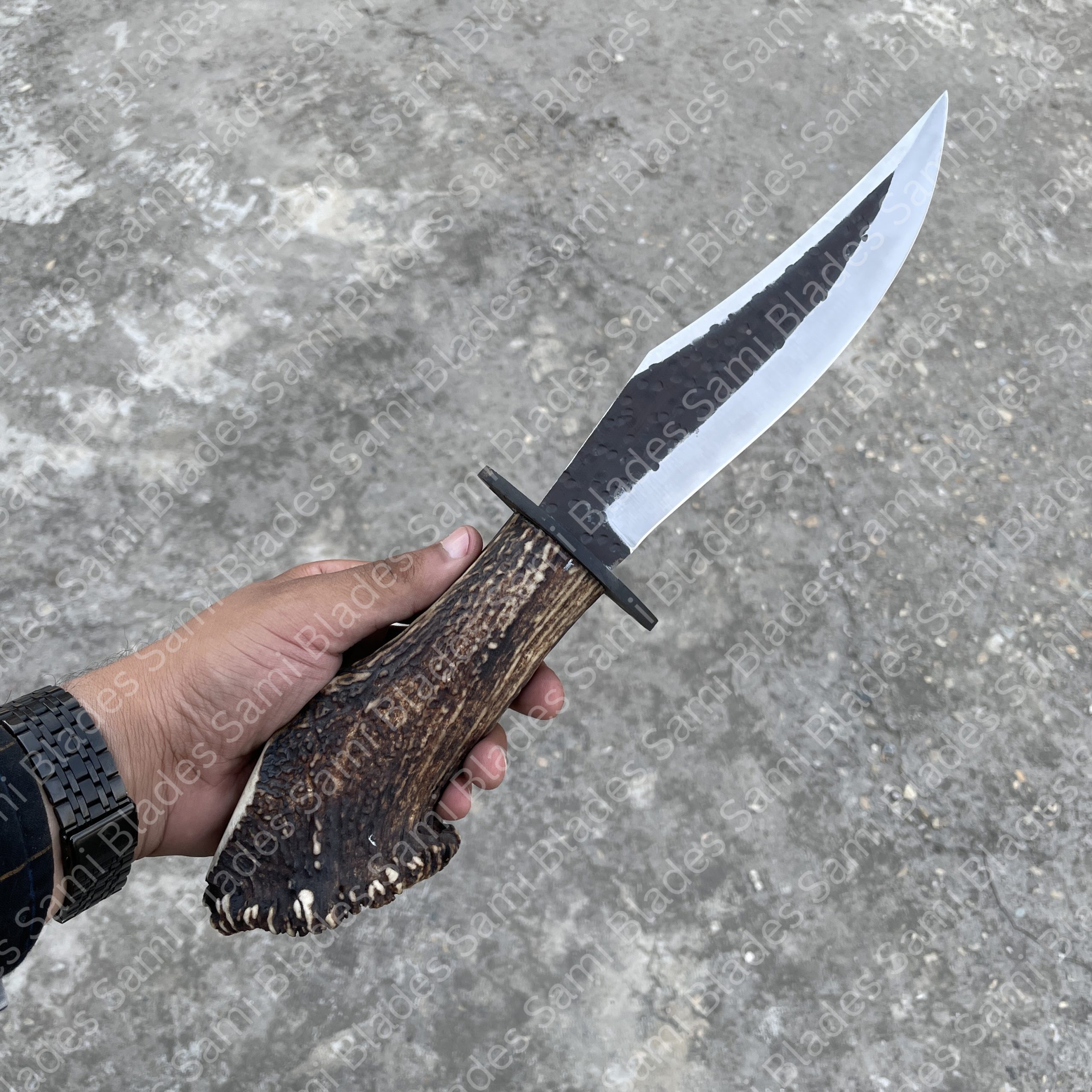 This custom stag handle bowie comes with a genuine leather sheath for safe storage and stylish cart, Making this steel knife an excellent gift or addition to any collection.