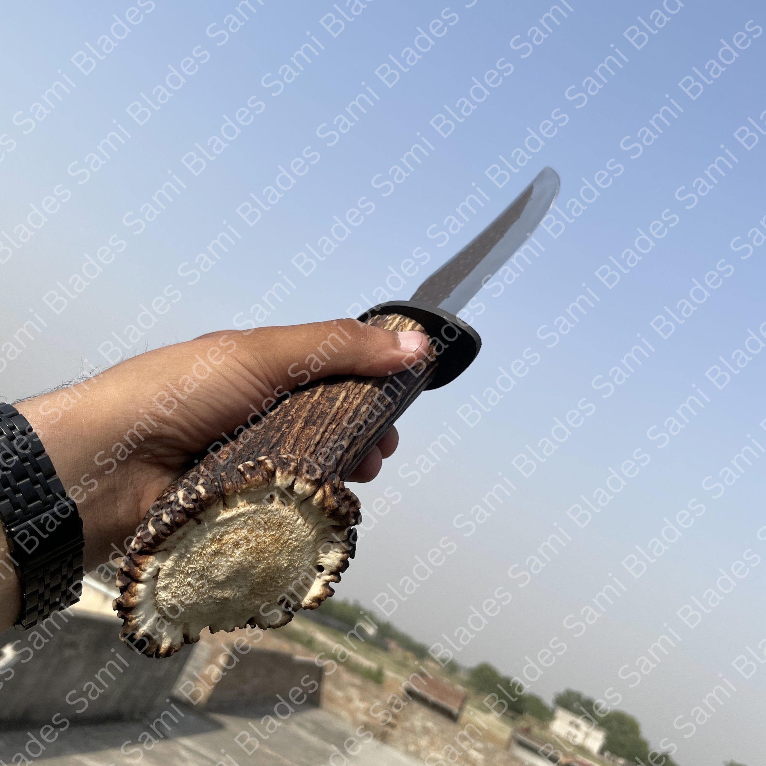 The Steel Blade is 8 inches that is made from high quality high carbon steel which is well known for its extraordinary sharpness, toughness and edge retention. This handmade crown stag knife is heat treated and polished with perfection by a professional skill person who makes this steel knife ideal for heavy duty tasks and precise cutting.