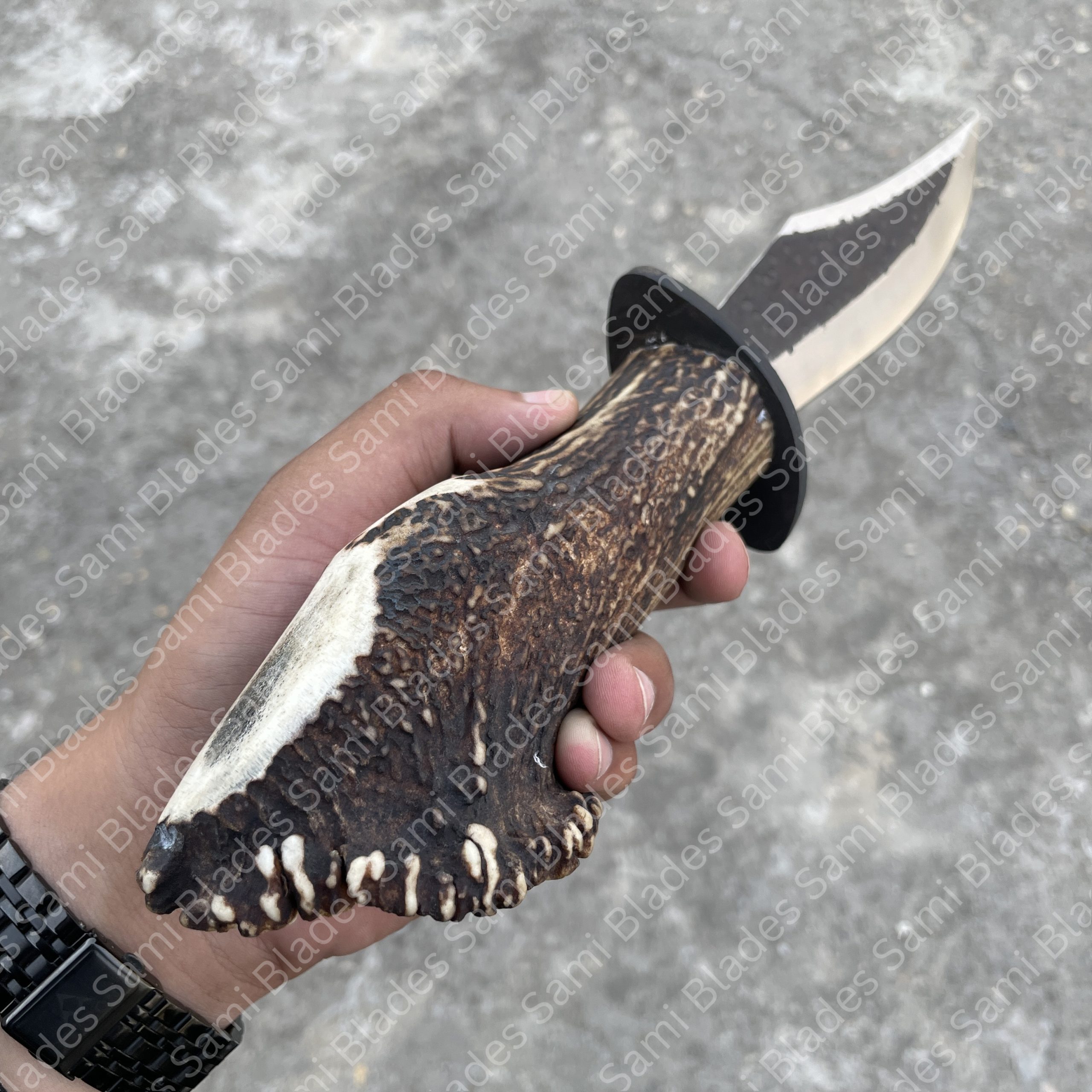 This crown stag fixed blade knife is a mixture of wild style with uncompromising performance. However you are buying a custom bowie knife for the field or a unique antler handle hunting knife for display, this blade is forged to impress everyone.