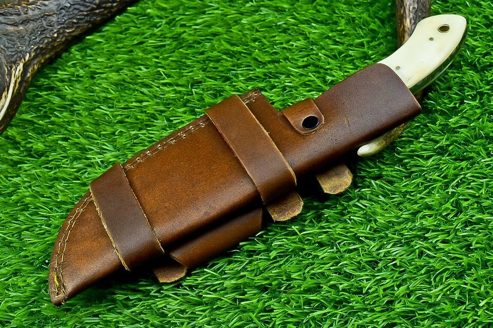 Introducing the 12-inch Handmade Damascus Bowie Knife, a bold blend of power, beauty, and craftsmanship. Designed for hunting, display, and outdoor utility, this knife features a 7-inch Damascus steel blade and a 5-inch bone handle, combining traditional materials with modern performance. It comes complete with a durable leather sheath for safe storage and carry.