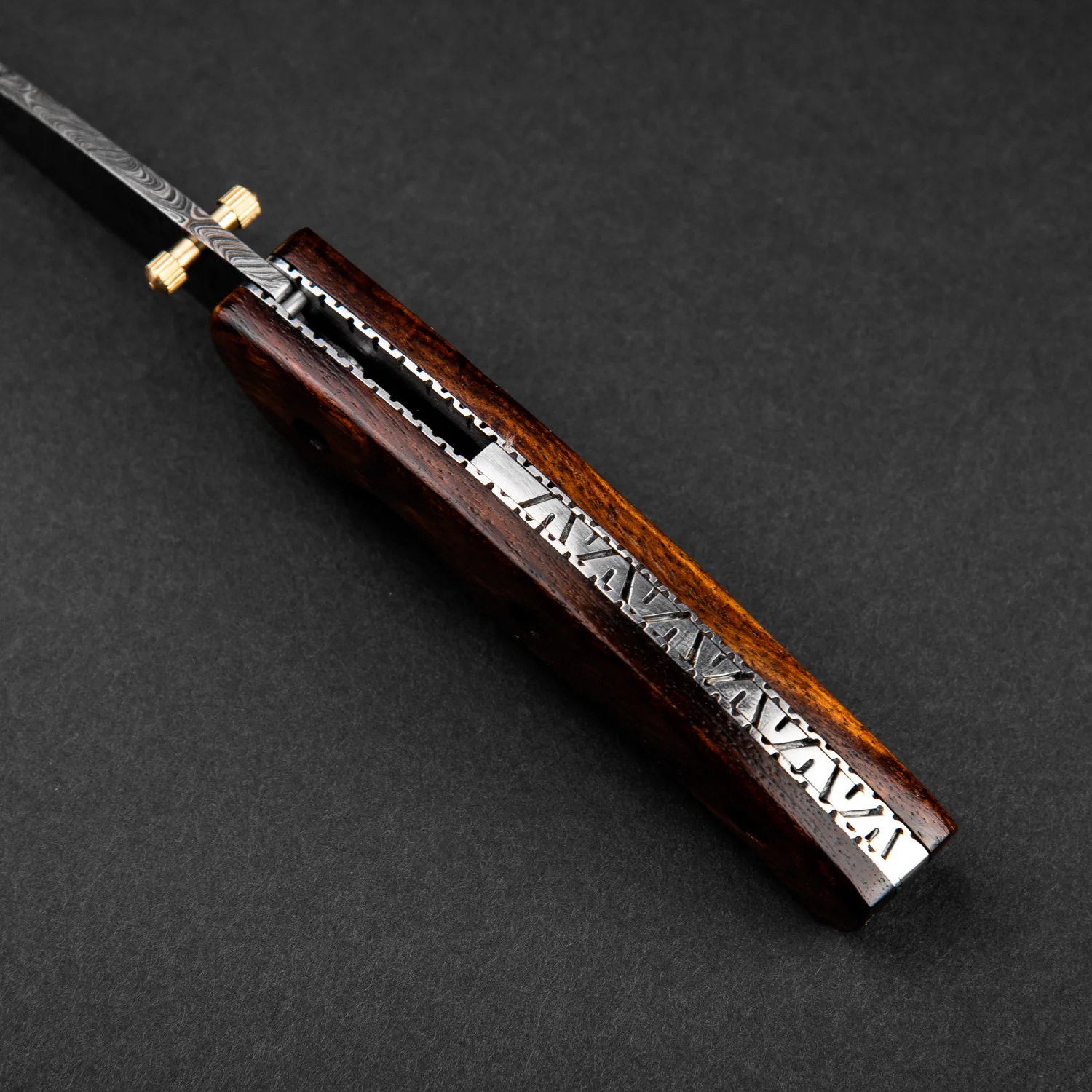 While this version features a polished wooden handle, its design is inspired by classics like the Damascus Folding Knife with Bone Handle, combining authenticity and function. For collectors, this is an Authentic Damascus Steel Pocket Knife, and for on-the-go use, it’s easily the Best Small Damascus Folding Knife around.