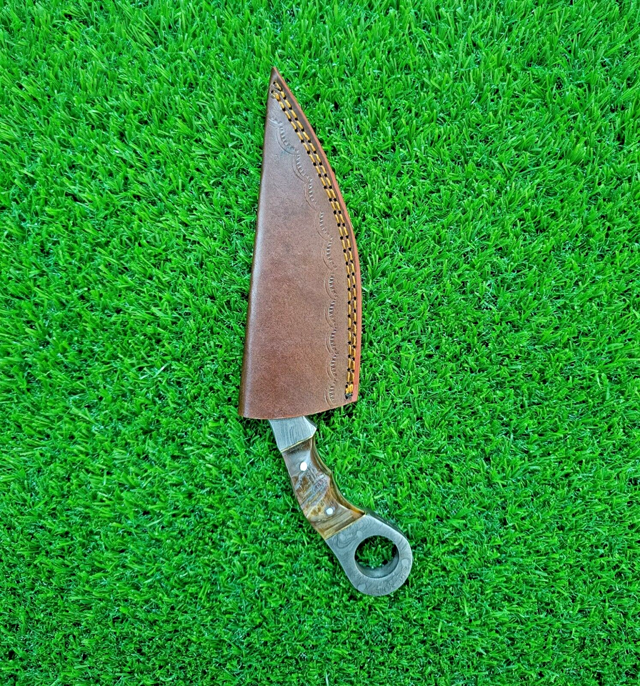 This knife also comes with a fitted leather sheath, making it a practical and safe Damascus Throwing Knife with Sheath to carry in your gear. Ideal for hobbyists and professionals alike, it’s a rugged yet refined Outdoor Throwing Knife.