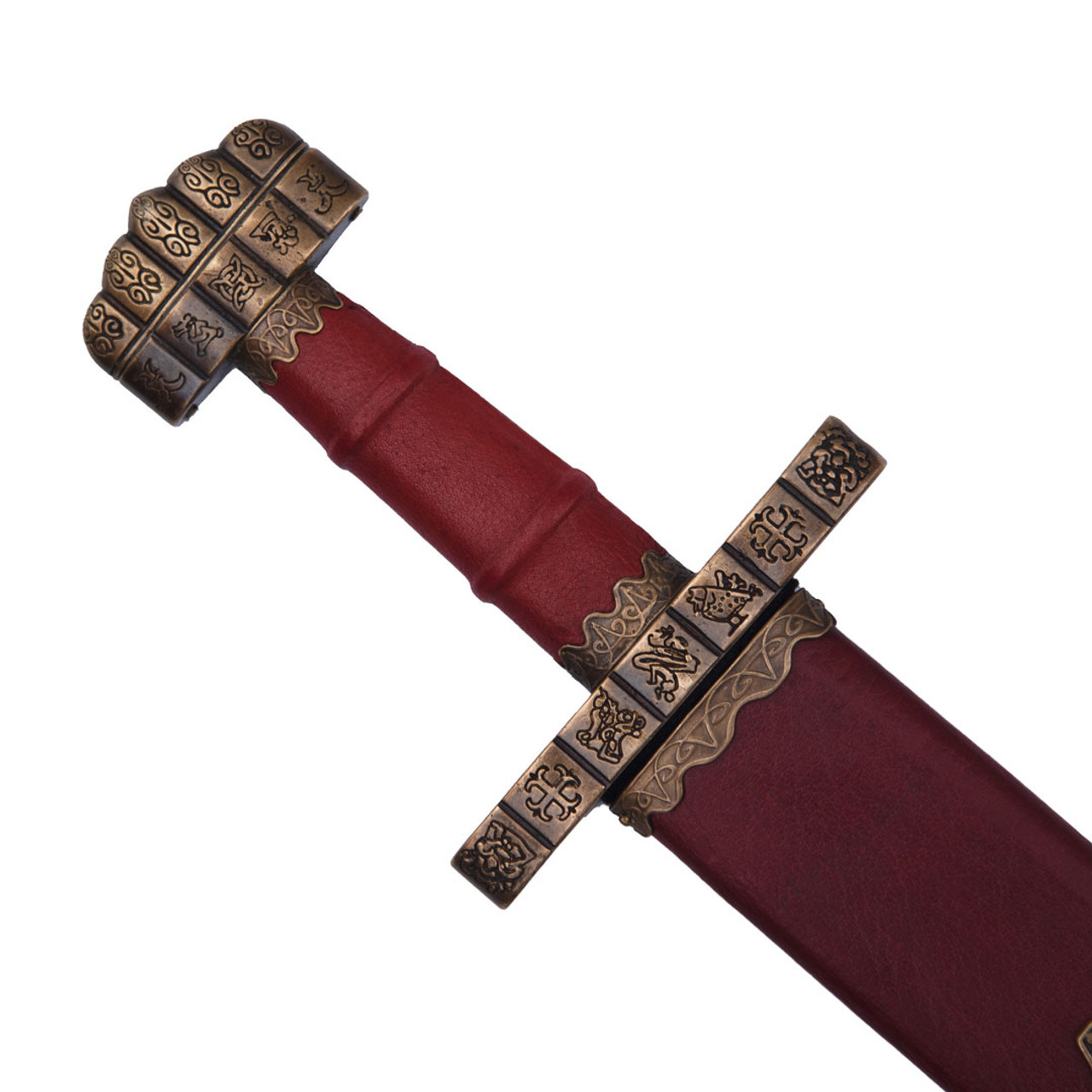 The 6 inch handle is made from solid bronze and wrapped in high quality leather, Giving a secure and comfortable grip while adding a traditional appealing. The combination of materials gives both functionality and historical appeal, The Sword speak for the type of craftsmanship found in medieval Norse swords. Every detail of Sword is designed to reflect the character of a original authentic Viking era weapon, Perfect for those who worth historical honesty .